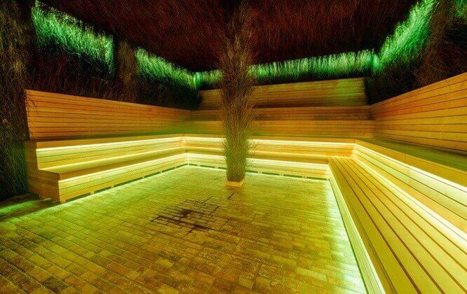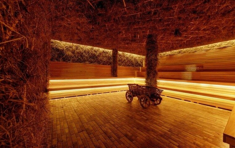 - Кофейная сауна — первая в мире, до 50 человек, 55-60°C, из натурального кофе и можжевельника.