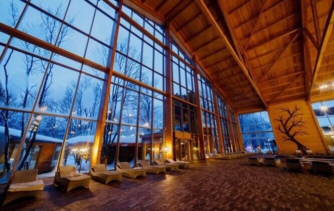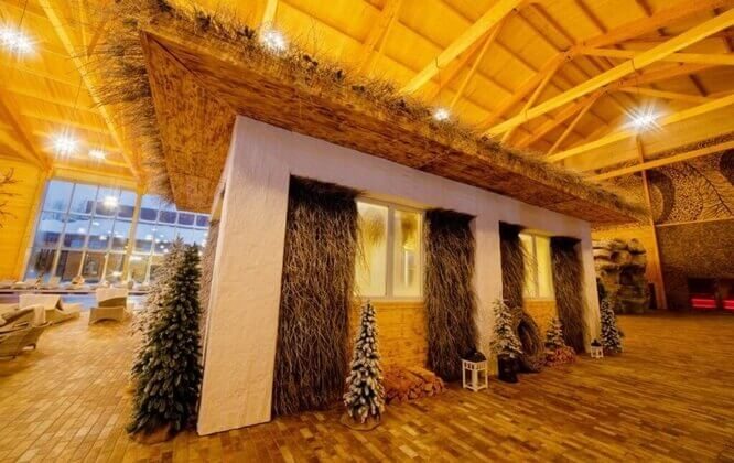 Термальная зона отеля Солнечный предлагает уникальный комплекс с 16 видами саун и бань, а также 10 бассейнами. Все это предоставляется бесплатно, по системе «все включено».