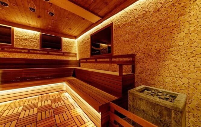 - Био сауна — 65°C, с гималайской солью и канадским кедром.