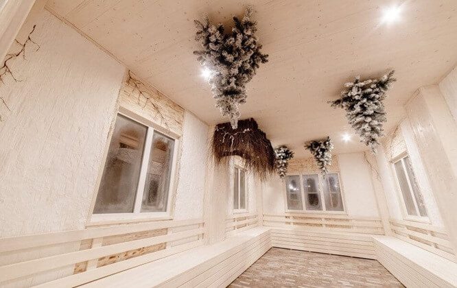 - Снежный домик — до 35 человек, 0-+5°C, хладотерапия.