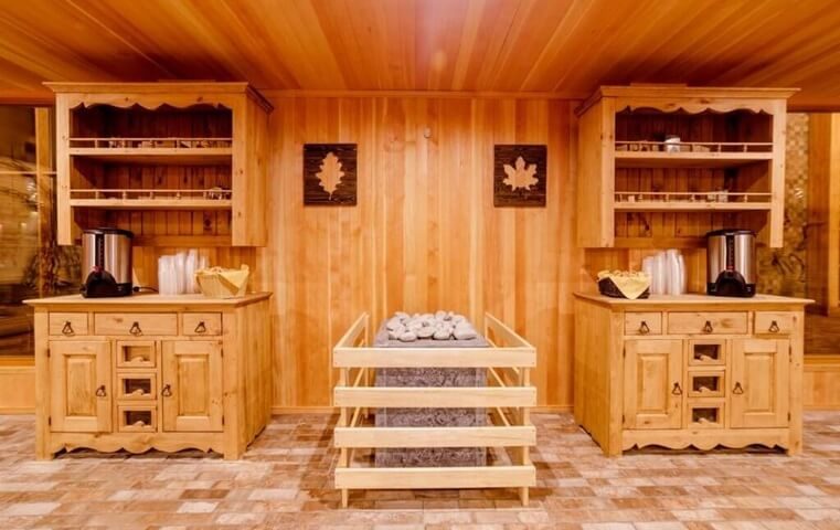 - Сауна #1 — самая большая в мире, до 350 человек, 55-60°C.